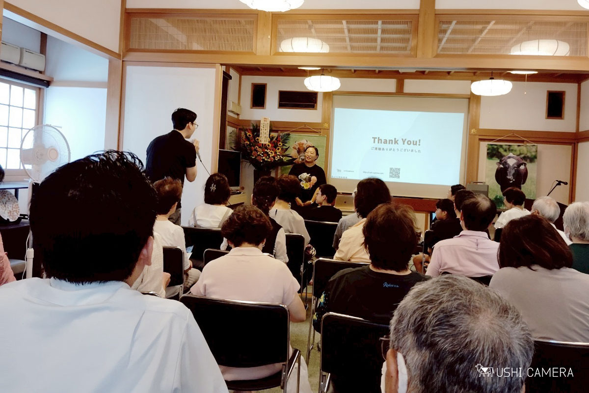 遠くは千葉県銚子市から、さらには九州からと、、酷暑の中でも足を運んでくださり本当にありがたいです。牧場の元従業員さんが赤ちゃんを抱っこして来てくれたり、昔働いていたカメラ店の店長が、「高田さん個展とかやってないかな〜と思ってホームページ見たらちょうど近くで講演があったから来た!」と、20年ぶりの再会もあり、いろんなところでご縁が繋がっていくことに喜びを感じています。