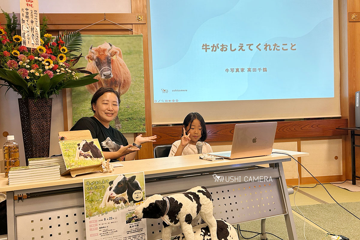 遠くは千葉県銚子市から、さらには九州からと、、酷暑の中でも足を運んでくださり本当にありがたいです。牧場の元従業員さんが赤ちゃんを抱っこして来てくれたり、昔働いていたカメラ店の店長が、「高田さん個展とかやってないかな〜と思ってホームページ見たらちょうど近くで講演があったから来た!」と、20年ぶりの再会もあり、いろんなところでご縁が繋がっていくことに喜びを感じています。